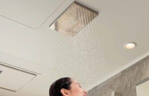 バスルームで快適になるのが、たっぷりのお湯に包まれるオーバーヘッドシャワーです。