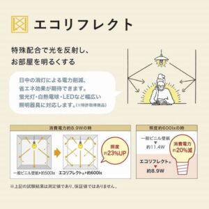 リビングなど長時間照明を使用する部屋におすすめで、光の反射によりお部屋を明るくするため、日中の消灯による電力削減など、省エネ効果が期待できます