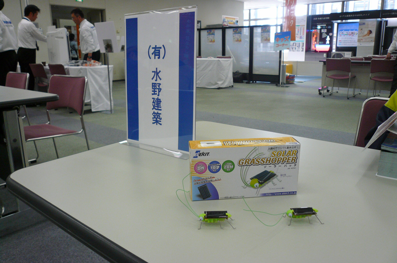 工作教室で、お客様のお子さんが作られたソーラーバッタです。