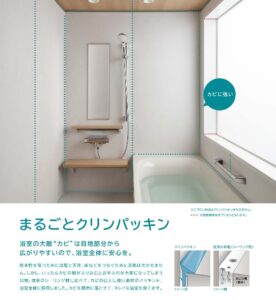 このパッキンは、従来のコーキング材に比べてカビが入りにくい素材となっているので、カビ対策はバッチリです。