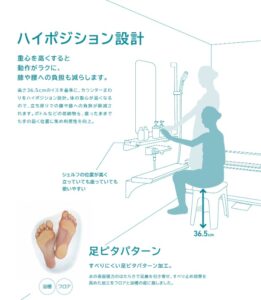 また、他社さんのカウンターより高めに設計されているため、楽な姿勢で鏡に近づくことができます。