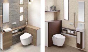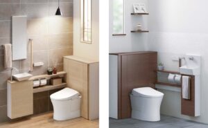背面キャビネット内に固定スタンドを組み込むことで、便器を床から浮かせたフローティングデザインのトイレも登場しています。おしゃれなトイレ空間が誕生します。