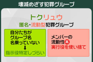 トクリュウは「“匿(トク)”名・“流(リュウ)”動型犯罪グループ」の略です。