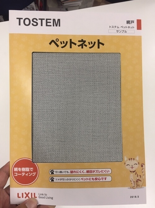 また、ペットの爪がひっかかりにくいという特徴があり、爪が傷つきにくいのでペットにもやさしい網戸です。