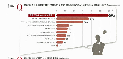 業界紙のニュースで、顧客層や要望がどのように変化したか聞いたところ「予算が合わない人が増えた」が約60%で最多となりました。