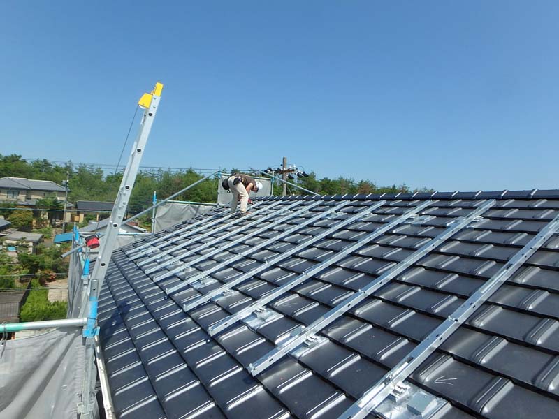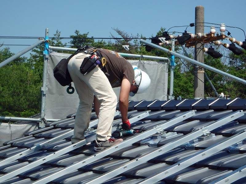 太陽光パネルを取り付けるための下地を作成します。