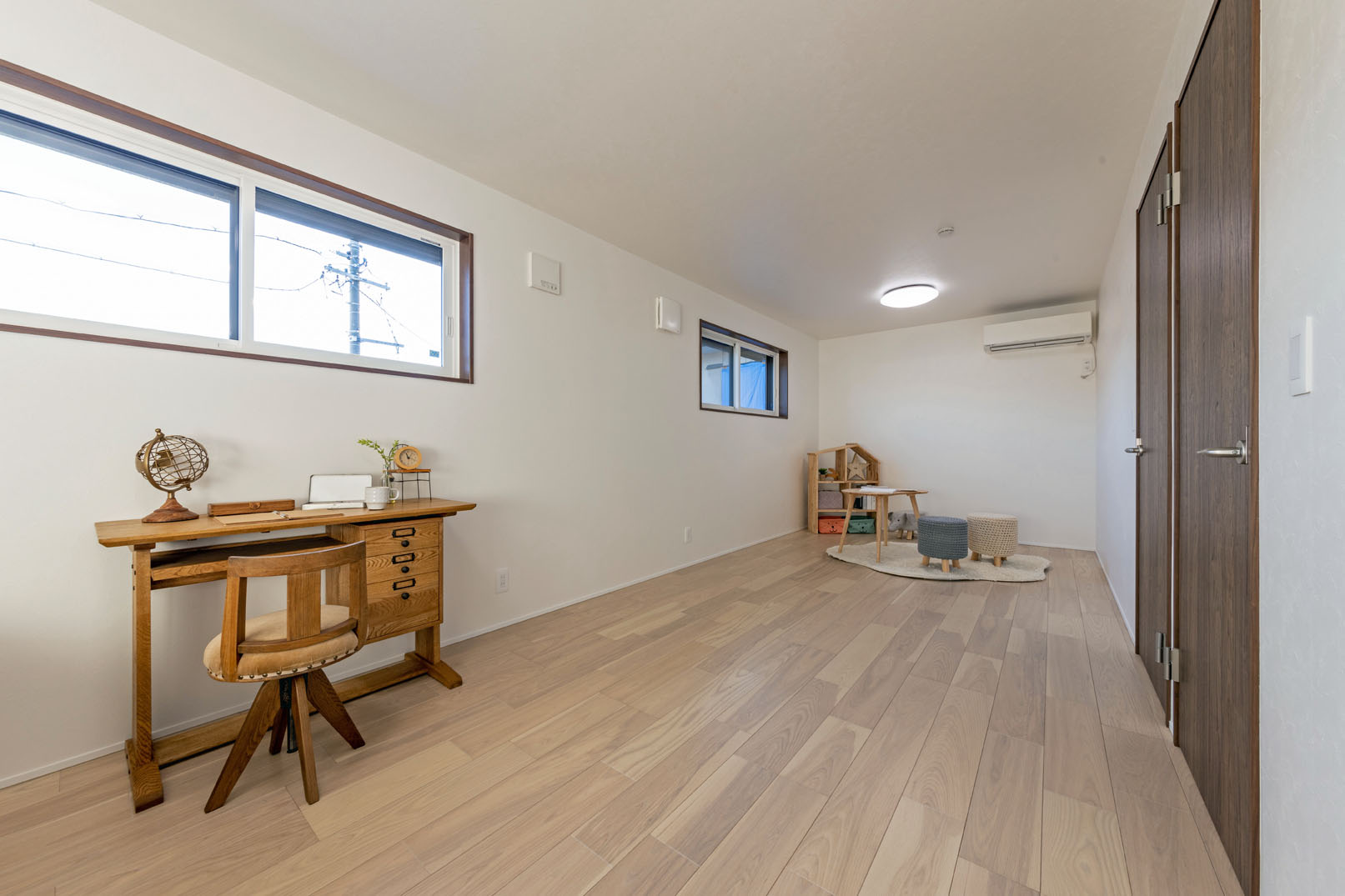 個室の使い方は、子どもが幼いころには8帖を2人で使い、思春期になったときに壁を作って仕切る方法も合理的です。いずれ子どもが巣立った時は書斎として使うのもいいですし、ゲストルームにするのもよいでしょう。