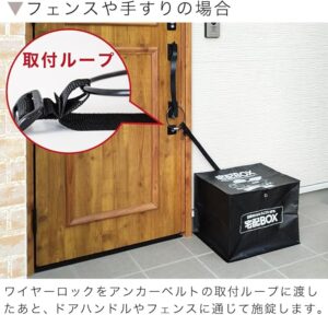本体にワイヤーを通してドアノブや柱に固定するので設置工事は不要です。