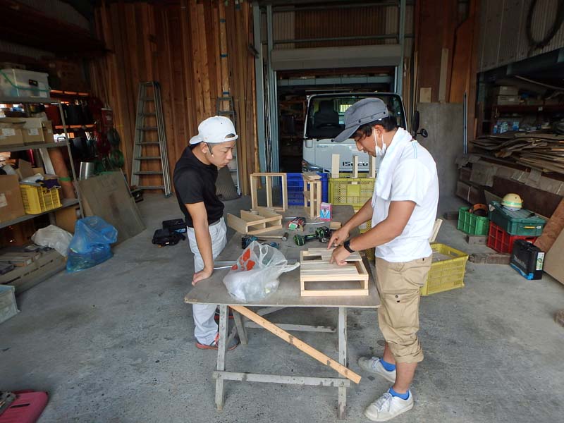 作業場を休憩所とバザー品を陳列するためのスペースを作ります