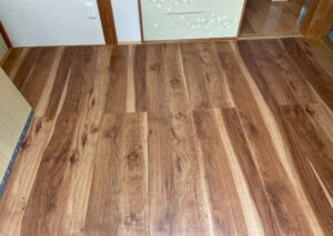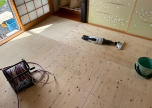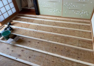 N様邸では畳を剥がしたあと、下地の木材を取付け、フローリング下地材のベニヤを張ってからフローリングを張りました。