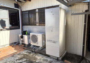 2台の取替工事はオーナーのお客様からの依頼です。(エコキュートからエコキュート)