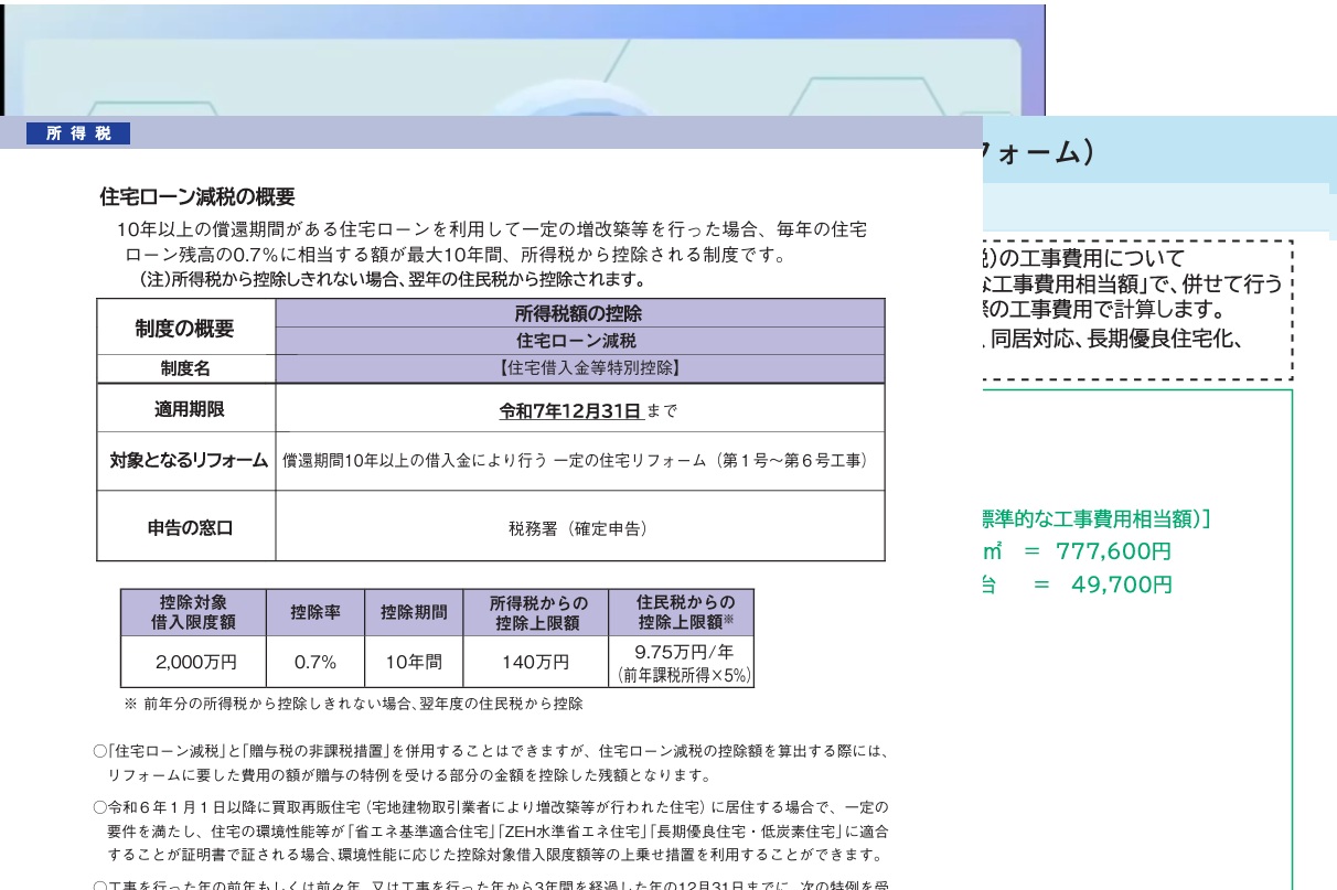 リフォーム減税で1年に80万〜100万円戻るケースもあります。
