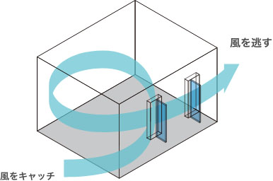 自然と空気が動き、下から風を引き込む力が生まれます。