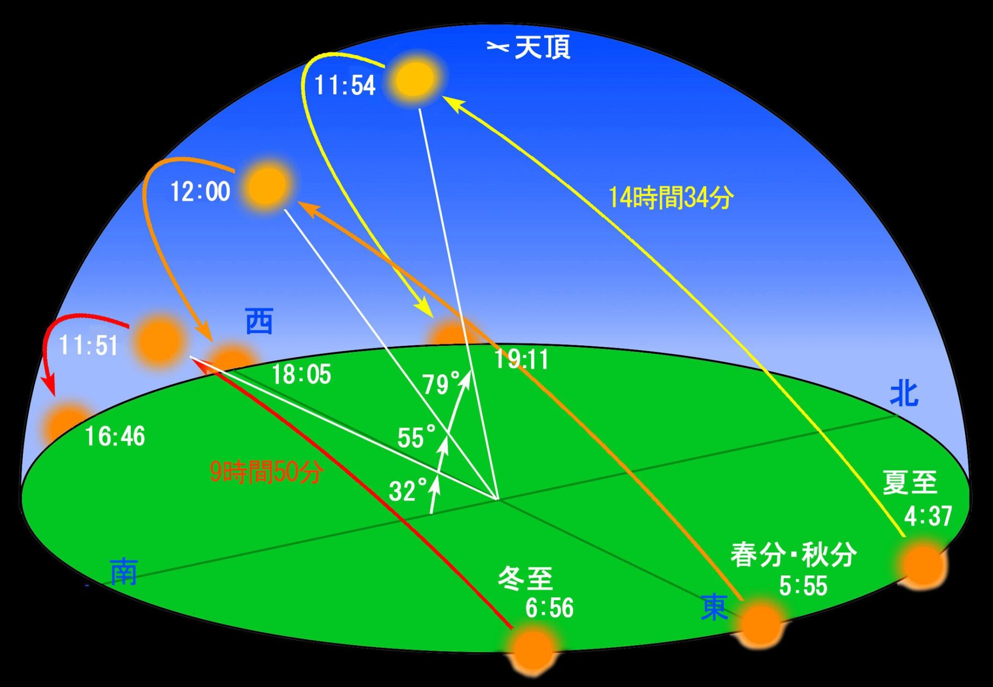 冬至と比べると昼の長さが5時間近く長いそうです。
