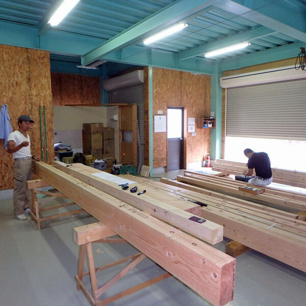 今回は、弊社の作業場で墨付けをして木材を刻みます。
