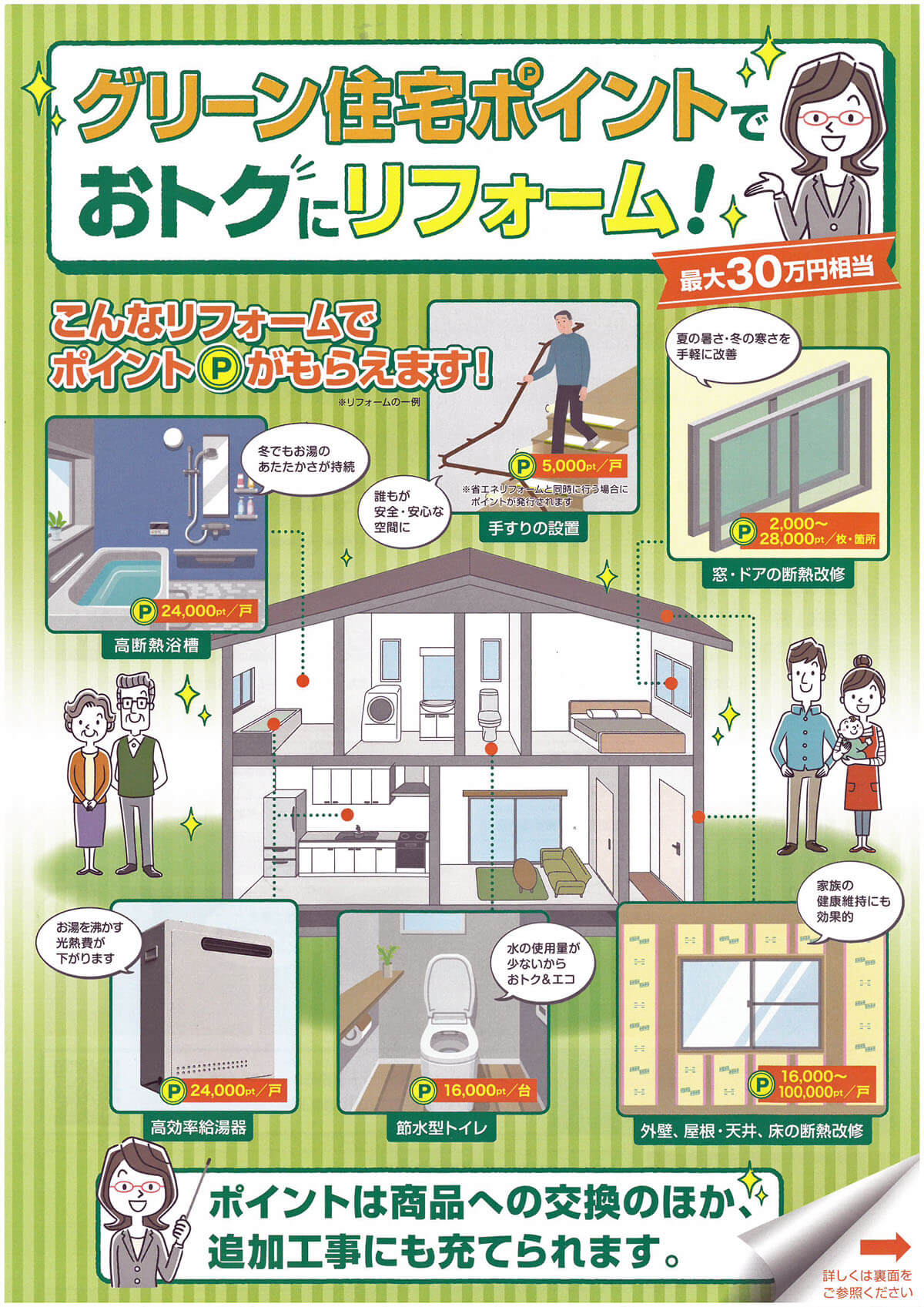 グリーン住宅ポイントでおトクにリフォームしませんか。 高い省エネ性能がある住宅にリフォームすると、商品や追加工事と交換できるポイントが発行される「グリーン住宅ポイント制度」がスタートしています。 これからリフォームをお考 […]