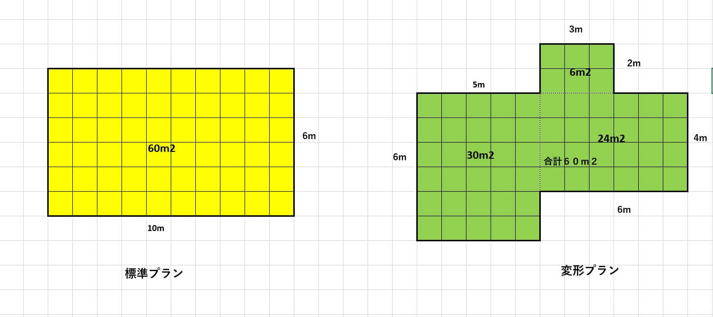 同じ床面積でも形が変わるとコスト(値段)は変わりますか?