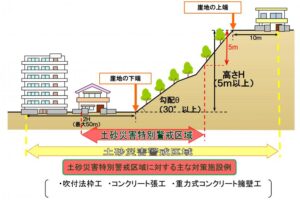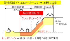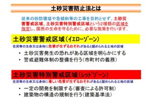 住んでいる土地が、土砂災害警戒区域(通称:イエローゾーン)と、特に命が危険となる区域が「土砂災害特別警戒区域」(通称レッドゾーン)に指定されているところがあります。