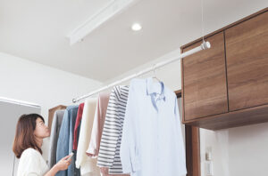 お客様と間取り作成時のヒヤリングや、水回りリフォームの時に洗濯物をどこに干すかを確認します。