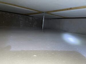 床下に潜って、給水管や給湯管、排水管に水漏れがないかの点検をします。