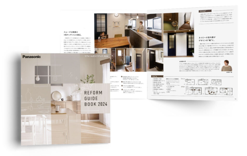 住設メーカー・Panasonicが提案する、“よりよい暮らし”のためのリフォームガイドブック。キッチンやお風呂、トイレなど、日々の暮らしの中で感じる「ちょっと不便」や「もっとこうしたい」を解決するための最新設備を、豊富な事例とともにわかりやすく紹介しています。