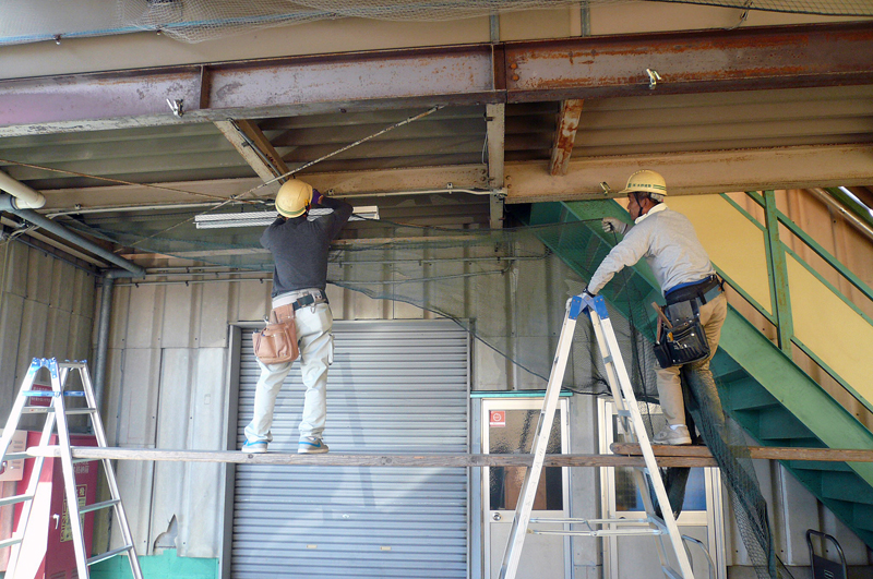 防鳥ネットを取付ける工事は初めてでした。