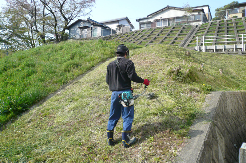 建物周りの草刈り機を使っての草刈りをしてくれました。