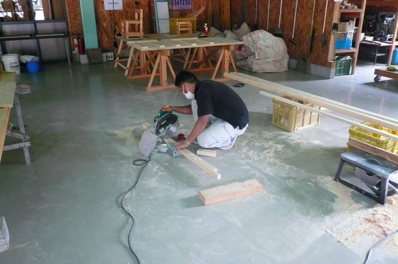 14日には平林君が休日を返上して、木工教室の材料を作ってくれました。