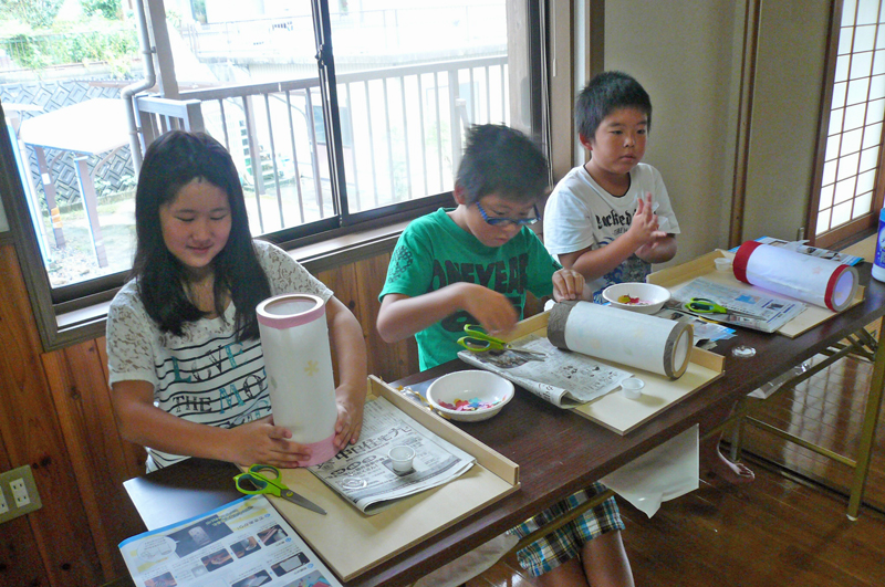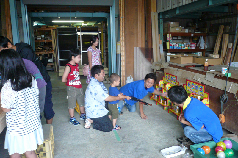 ・子供たちが楽しそうに遊ぶ、射的と水風船