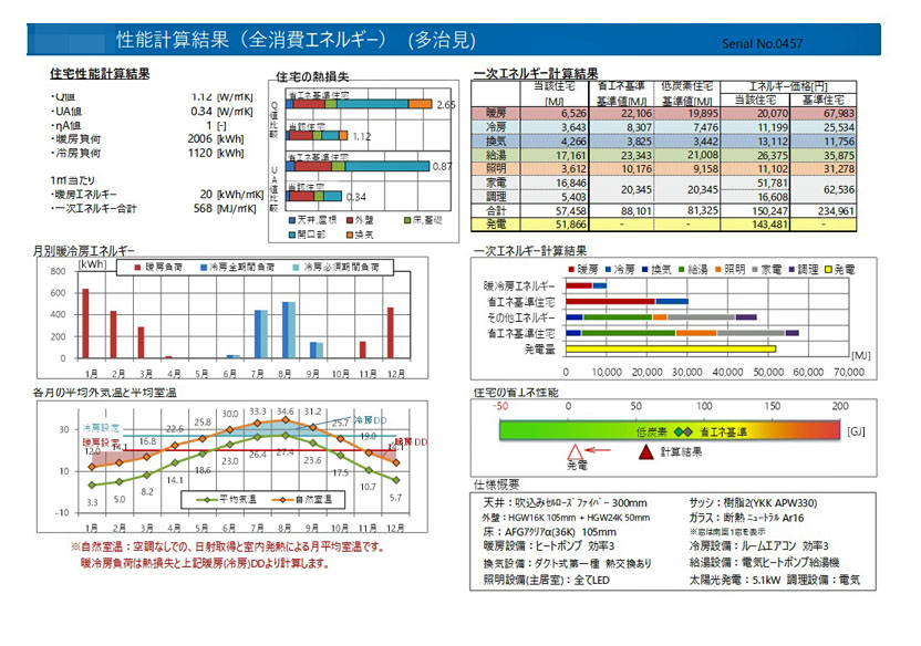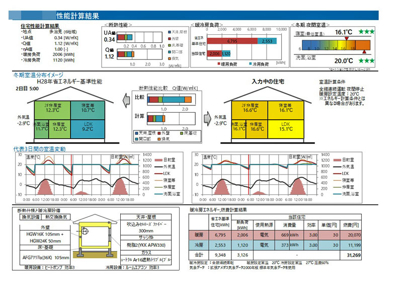 水野建築ではプランを作成した時に、冬は室温を20℃、夏は室温を27℃にするための必要な年間冷暖房費を計算しています。