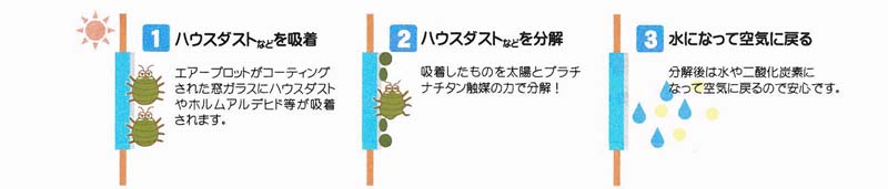 窓ガラス表面にプラチナチタン触媒のコーティングが出来ます。
