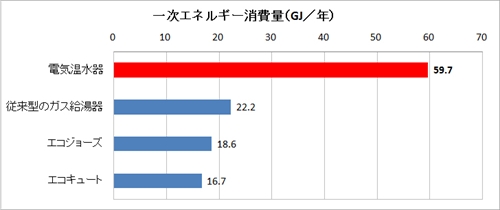 、一般的な電気給湯器と比べると3分の1程度の電力で済みます。