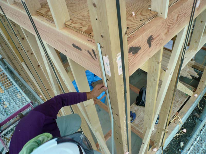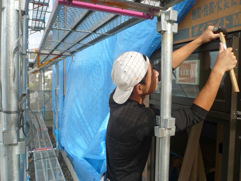サッシ取付にも気密パッキンを取り付けています。