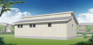 建物のデザインと間取りについてですが、紹介するお住まいは外壁をガルバリウム鋼板張で仕上げてスタイリッシュに仕上がっています。