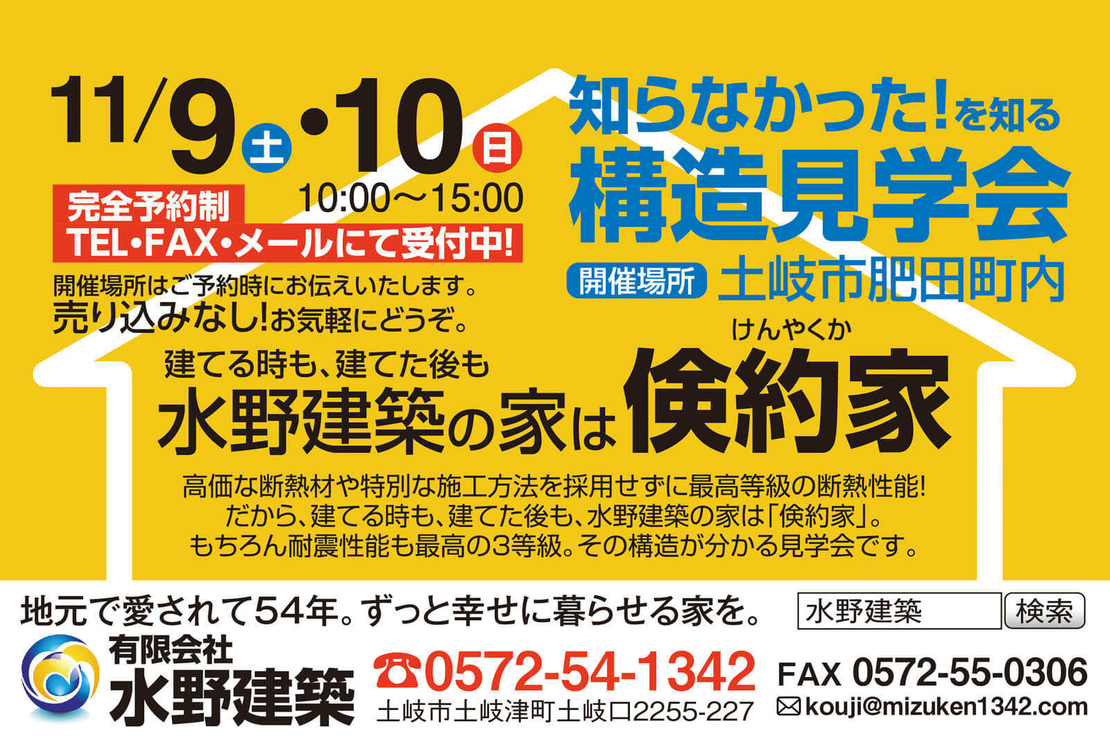 日時:令和3年10月9(土)・10日(日) 時間:午前10時から午後3時 場所:土岐市内 「構造見学会」を開催します!お見せするのは土岐市Y様邸。 この家は水野建築の標準仕様とな […]