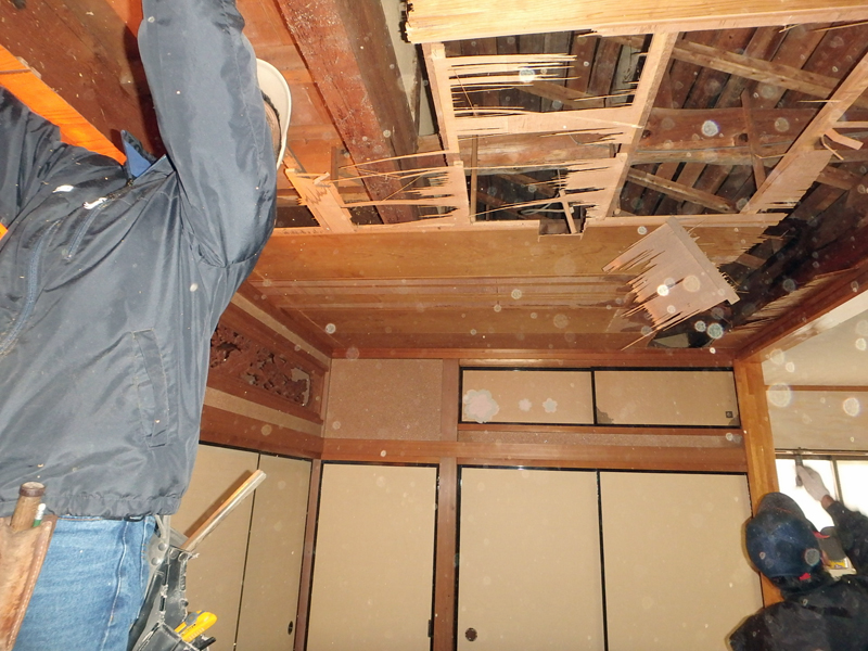 そして、雨漏れの場所を確認するために和室の天井を解体し、