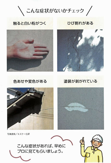 外壁にあらわれる劣化のサインに気づいて、早めのメンテナンスを心掛けましょう。