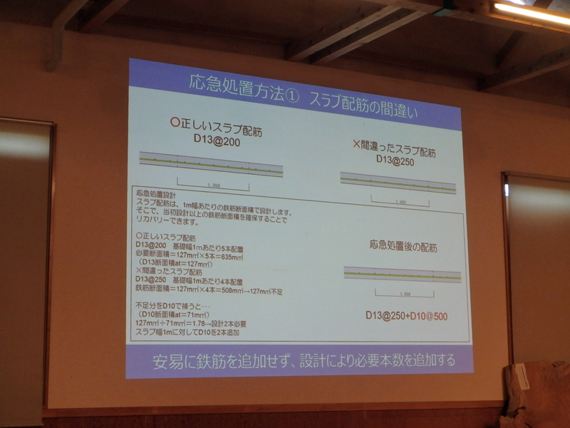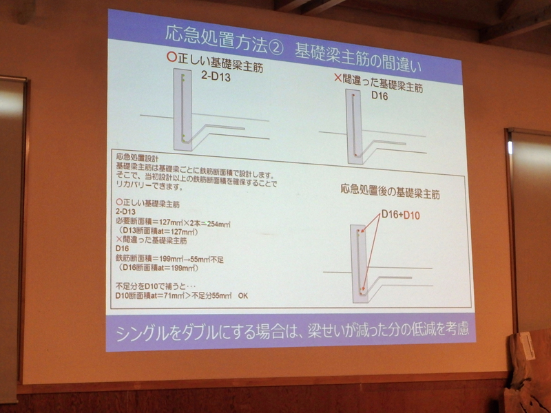 当初設計以上の鉄筋断面積を確保することでリカバリーできます。
