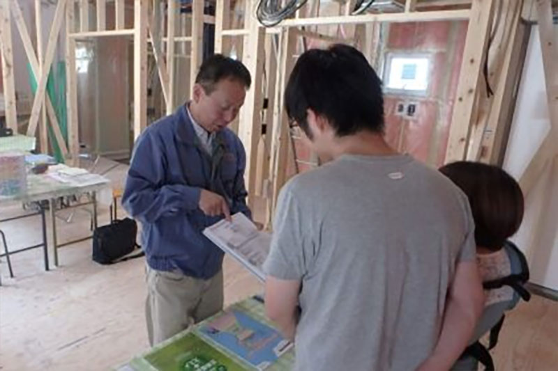現場には、大工さんの様子、材料の扱い方、現場の整理整頓の状況など、家づくりそのものが鏡のように現れます。だからこそ、現場を実際に見ていただくことで、お客様に安心していただけると考えて、この取り組みをしています。