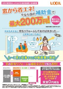 断熱性能の高いエコな家にするために、手っ取り早く窓を改修すればエネルギーロスが減るので、高性能窓のリフォームには補助金が出てくるのだと思います。
