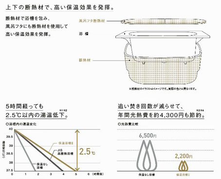 保温浴槽でないと、お湯はすぐにぬるくなってしまいます。