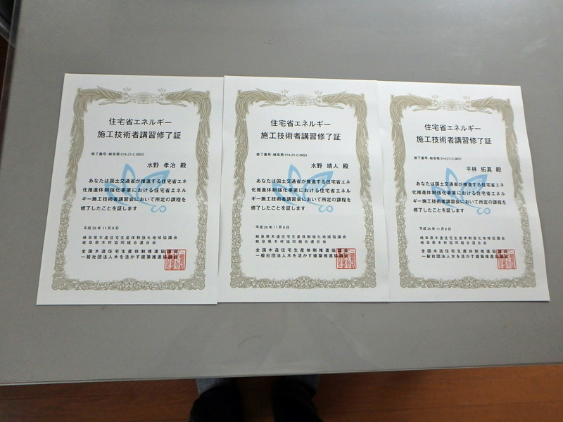 先週の8日(土)に住宅省エネルギー技術施工技術者講習会に私と、靖人君、