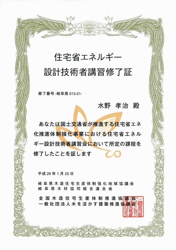 先週の土曜日に「岐阜県住宅省エネルギー設計技術者講習会」に