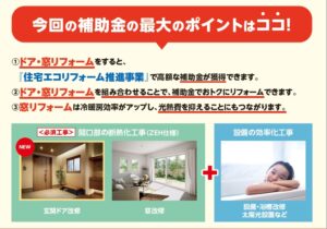 1,ドア・窓リフォームをすると、『住宅エコリフォーム推進事業』で高額な補助金が獲得できます。