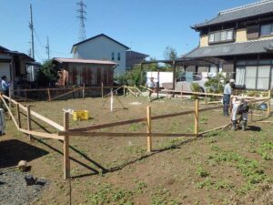 建物の位置出し(丁張)を行ったのが9月28日です。