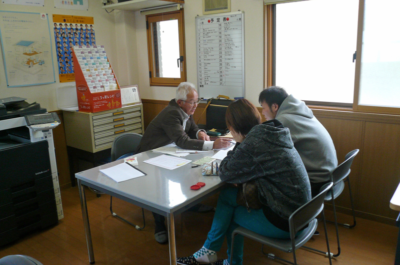 O様ご夫妻に弊社の事務所に来ていただいて、会社説明や家づくりの考え方、