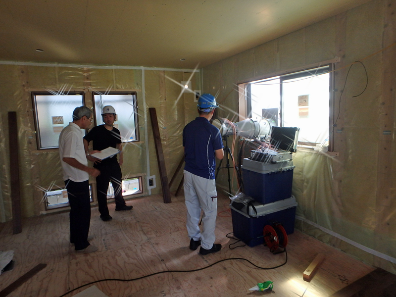 現場で働く職人さん達のまじめな仕事が気密測定の結果で表されます。