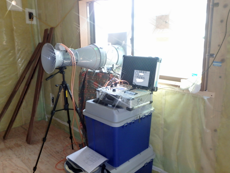 建築中の現場で1回目の気密測定を行いました。