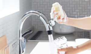 蛇口の下に手や食器を差し出せば自動で水が出て蛇口から離れると水が止まるため、水栓に触れる必要がありません。水を出しっぱなしにすることもなくなり、節水にもつながります。
