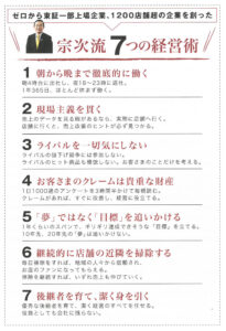 ゼロから東証一部上場企業、1200店舗超の企業を造った経営術の話を、面白おかしく話されたので1時間30分があっという間でした。